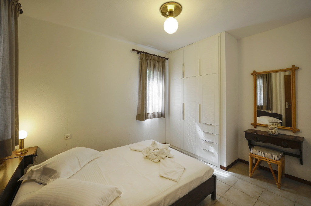 Гости отеля Trikorfo Beach могут забронировать 28 отдельных бунгало с интерьерами в колоритном средиземноморском стиле и деревянной мебелью, рассчитанных на проживание от 2 до 6 человек. Каждое имеет выход на террасу и окружено небольшим садом. Внутри есть оборудованная кухня с обеденной зоной, а оснащение включает плиту, холодильник, кухонные принадлежности, посуду и столовые приборы, а также кондиционер, телефон и спутниковое ТВ.