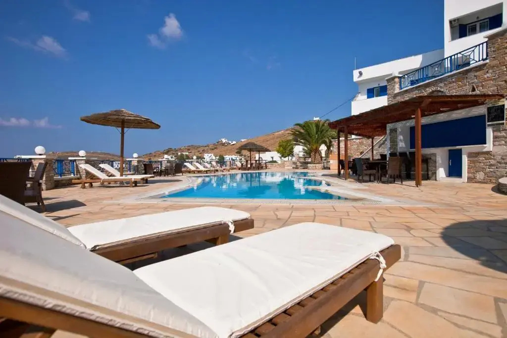 Отель Hermes, адрес на карте Иос, Main Street, с описанием номеров и правом онлайн бронирования на ресурсе vashotel.ru , стоимость проживания и удобства.