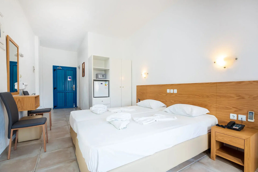 Отель Marcos Beach 3 звезды, адрес на карте Иос, Mylopotas, с характеристиками номеров и доступностью онлайн бронирования на сайте vashotel.ru , стоимость проживания и удобства.