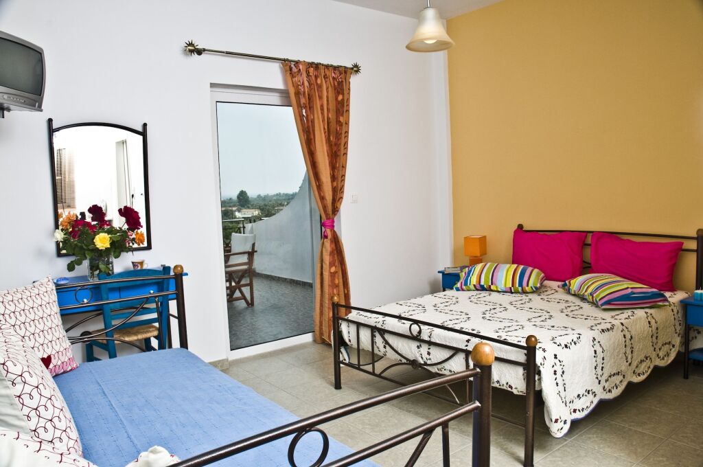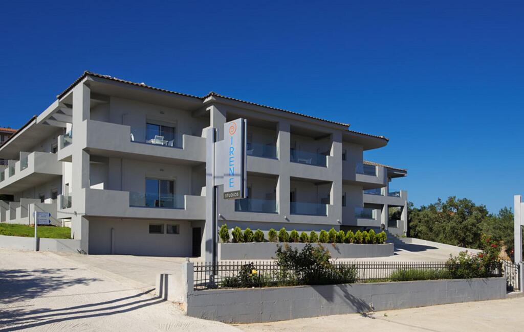 В кондиционируемых номерах отеля Irene Studios есть кофеваркачайник и бесплатная бутилированная вода. Имеются меблированные балконы, откуда открывается вид на море. Постельные принадлежности включают: пружинный ортопедический матрас, а также постельные принадлежности премиум-класса. Апарт-отель имеет рейтинг 3 зв.; в номерах имеется мини-кухни, где есть холодильник, кухонные принадлежности, посуда, столовые приборы и кухонные принадлежности (кухонные полотенца, губки и т.д.). В ванных комнатах предлагается следующее: совмещенные душ и ванна и душ с дождевой насадкой. Также в ванных комнатах есть зеркало для макияжа или бритья и купальный халат. Бесплатно предоставляется беспроводной доступ в Интернет. В номерах есть плазменные панели.По запросу предоставляется: утюг, гладильная доска и фен. Обслуживание номеров выполняется ежедневно.