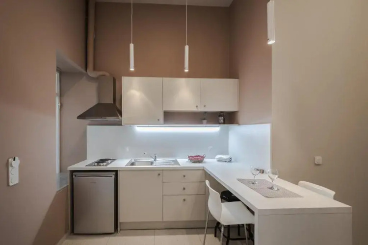 Отель Stylish Studio Apartments-1878 House, адрес на карте Каламата, 18 Σφακτηρίας, с описанием номеров и доступностью онлайн бронирования на ресурсе vashotel.ru , стоимость проживания и удобства.