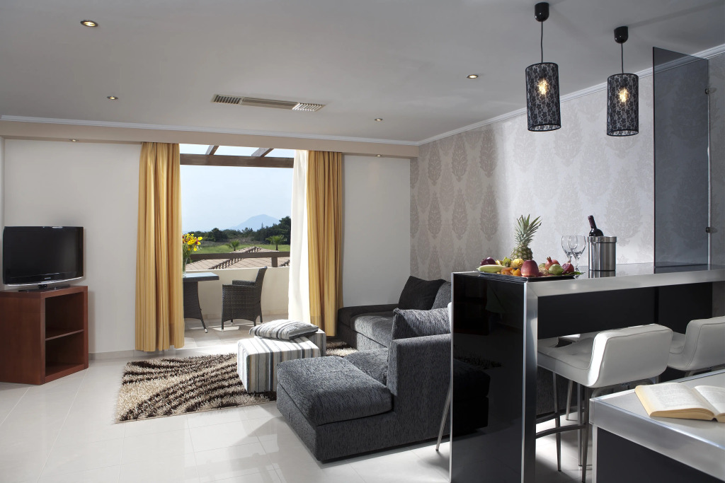 Пятизвездочный курортный отель Olympia Golden Beach & Spa располагает 56 роскошными номерами с ванными комнатами. В номерах есть все необходимые удобства, в том числе кабельное телевидение и доступ в Интернет. Некоторые номера имеют свои бассейны.