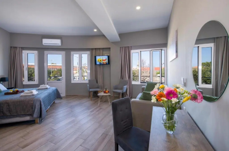 Отель Stoa Suites Chania, адрес на карте Ханья, Andrea Papandreou 5, с характеристиками номеров и доступностью онлайн бронирования на сайте ВашОтель.RU , цены проживания и удобства.