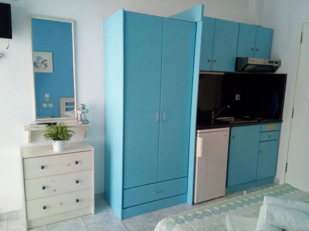 Отель Erietti Studios, адрес на карте Лептокария, Emmanouil Antoniadi, 60063, Leptokaria, Greece, с характеристиками номеров и доступностью онлайн бронирования на сайте vashotel.ru , цены проживания и удобства.