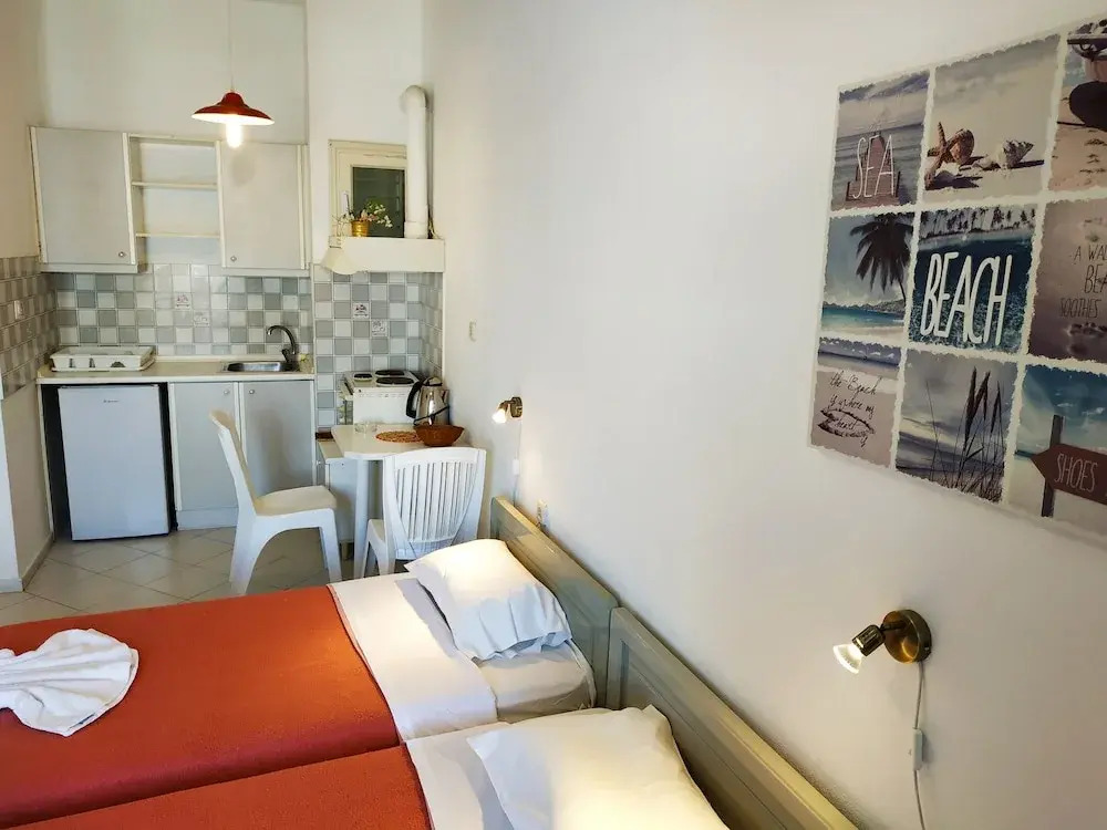 Отель Renia Studios Standard Studio Overlooking the Swimming Pool, адрес на карте Гази, Arkadiou, с описанием номеров и правом онлайн бронирования на ресурсе vashotel.ru , стоимость проживания и удобства.