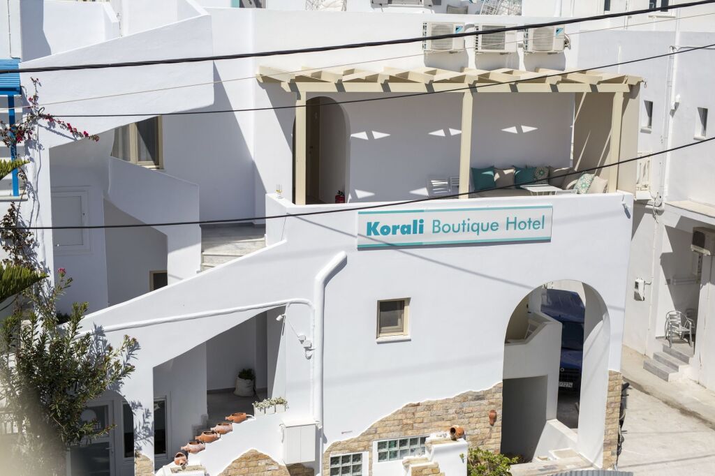Отель Korali Boutique Hotel 2 звезды, адрес на карте Наксос, Agios Georgios Beach, с характеристиками номеров и доступностью онлайн бронирования на площадке vashotel.ru , цены проживания и удобства.