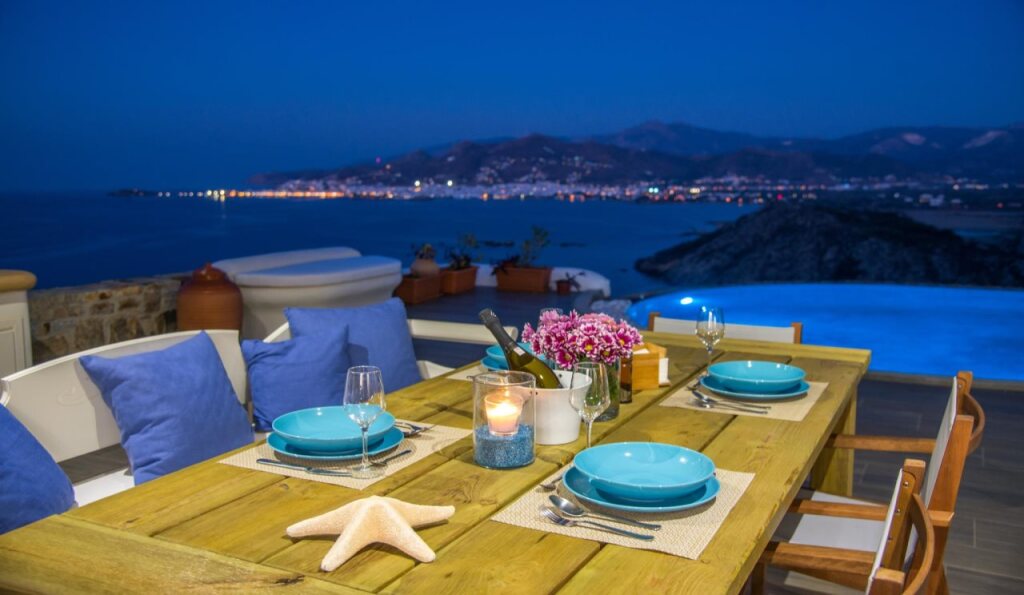 Экологичный и здоровый отдых начинается здесь. Вилла «Naxos Rock Villas» находится на Наксосе. Эта вилла располагается в 3 км от центра города. Рядом с виллой — Пляж Айос Прокопиос, Порт Парикия и Новый Порт Миконоса.