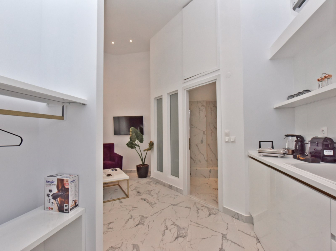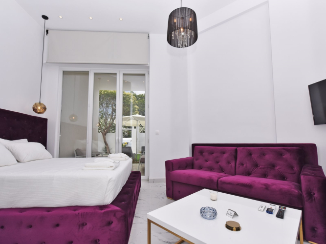Отель 4 Elements Sea Side Luxury Suites - Earth, адрес на карте Неа Моуданья, Agiou Georgiou 4, с описанием номеров и правом онлайн бронирования на ресурсе ВашОтель.RU , цены проживания и удобства.