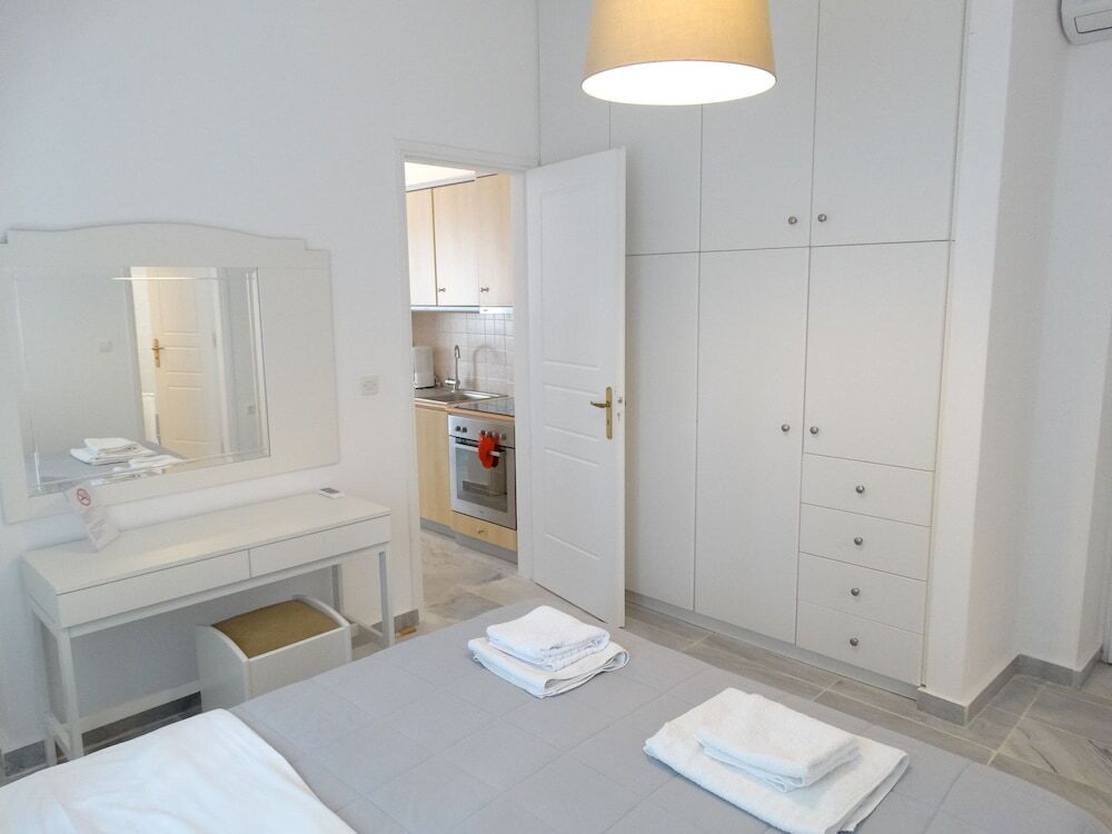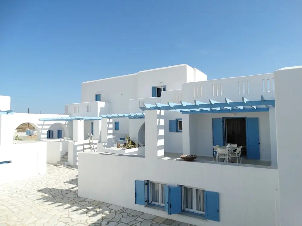 Подходящий вариант для бюджетного отдыха — отель «Kosmitis Suites & Villas» находится в Паросе. Этот отель располагается в 10 км от центра города. Рядом с отелем можно прогуляться. Неподалёку: Порт Парикия, Новый Порт Миконоса и Порт Тиноса.