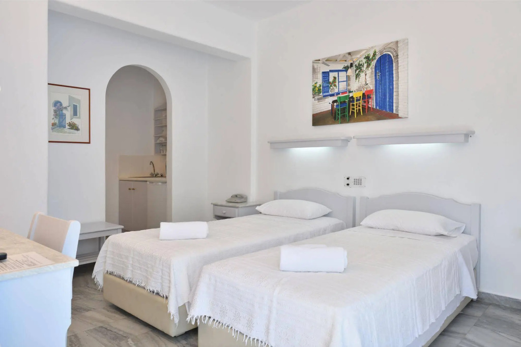 Отель Manis Inn, адрес на карте Парос, Piperi Beach, Naoussa Paros 84401, с характеристиками номеров и правом онлайн бронирования на ресурсе vashotel.ru , стоимость проживания и удобства.