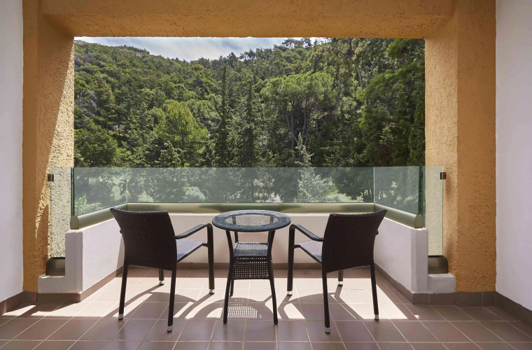 В отеле Sheraton Rhodes имеется 401 номер, оборудованных ванной комнатой с полным набором туалетных принадлежностей и феном. В каждом номере есть кондиционер, сейф и минибар, а также телефон и телевизор с возможностью просмотра спутниковых каналов. Предусмотрено круглосуточное обслуживание номеров и ежедневная уборка.