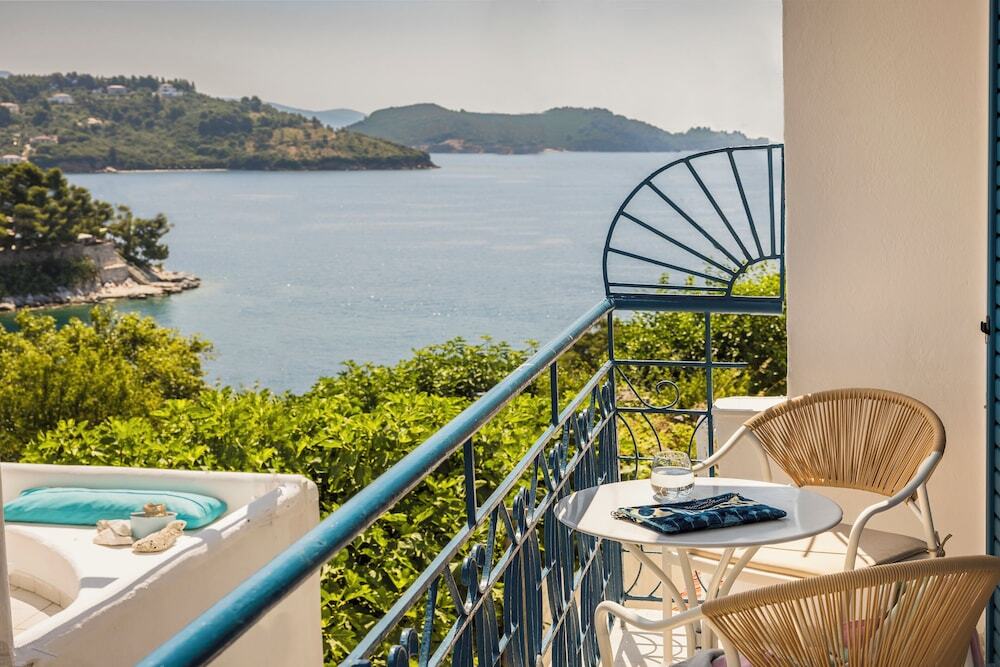 Хороший вариант для людей, любящих отдыхать в компании. Гостевой дом «The Blue» располагается на Скиатосе. Этот гостевой дом находится 1 км от центра города. Рядом с гостевым домом можно прогуляться. Неподалёку: Пляж Бурдзи, Пляж Плейкс и Пляж Мегали Аммос.