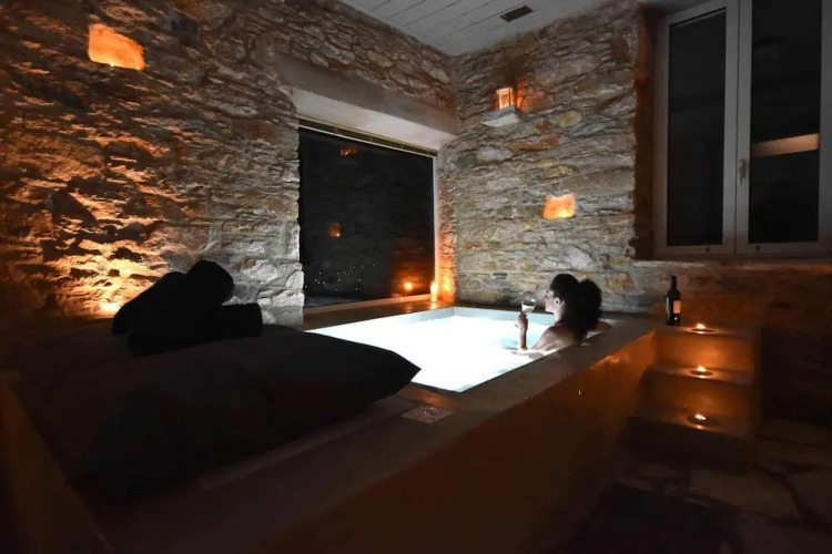 Отель Villa Gaia Syros 1800 s Stone Building, адрес на карте Ано-Сирос, Eparchiaki Odos Ano Mannas-Mega Gialou, с описанием номеров и возможностью онлайн бронирования на площадке vashotel.ru , стоимость проживания и удобства.