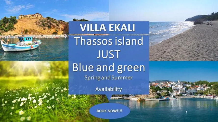Экологичный и здоровый отдых начинается здесь. Вилла «Villa Ekali» располагается в Тасосе. Эта вилла находится в 21 км от центра города. Рядом с виллой — Пляж Металия и Порт Керамоти.