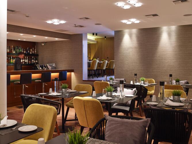 В ресторане гости могут рассчитывать на завтрак, второй завтрак и обед. В уютном баре можно провести неформальный вечер с друзьями или партнерами.