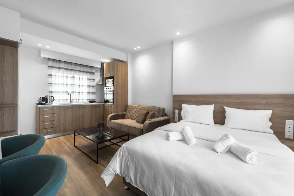 Отель Penthouse Level 8 Nilie Hospitality MGMT, адрес на карте Салоники, Eleftheriou Venizelou 13, с описанием номеров и доступностью онлайн бронирования на ресурсе vashotel.ru , цены проживания и удобства.