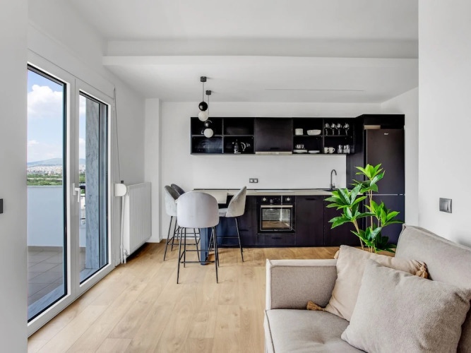 Отель Sanders Arch - Compact 1-bdr Apt w Balcony, адрес на карте Салоники, 4 Acheloou, с характеристиками номеров и возможностью онлайн бронирования на ресурсе ВашОтель.RU , цены проживания и удобства.