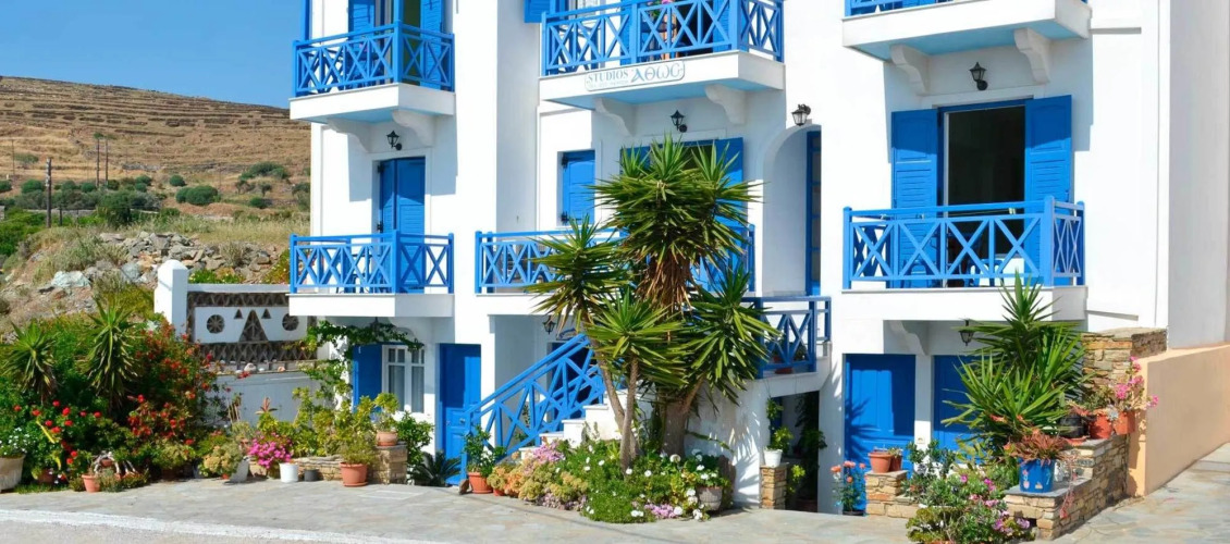Хороший вариант для людей, любящих отдыхать в компании. Гостевой дом «Athos Studios» находится в Тиносе. Этот гостевой дом расположен 1 км от центра города. Рядом с гостевым домом — Порт Тиноса, Новый Порт Миконоса и Порт Парикия.