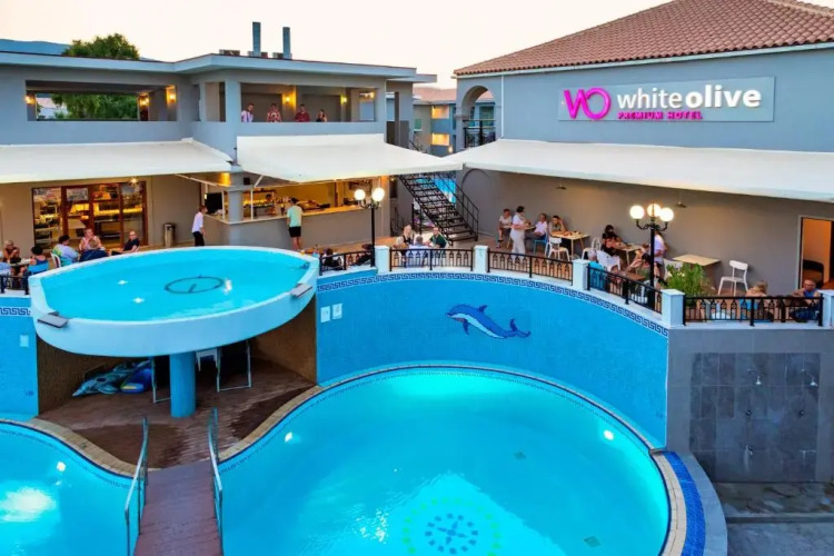 Отель White Olive Premium Laganas 4 звезды, адрес на карте Закинф, Laganas, с описанием номеров и возможностью онлайн бронирования на сайте vashotel.ru , цены проживания и удобства.