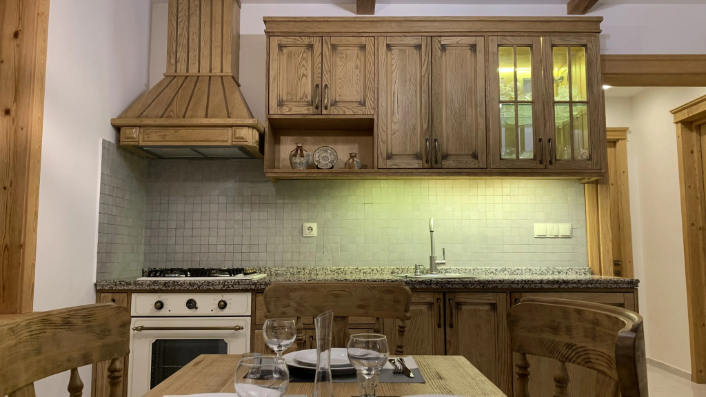 Дизайн Шале как снаружи, так и внутри выполнен в традициях альпийской Франции-Австрии и Швейцарии , каждый элемент экстерьера выполнен в традиционном стиле «Горное Шале». Мебель из натурального вощеного дерева а элементы декора из шерсти, хлопка и льна придают дому особый уют и комфорт наивысшего класса. Интерьер дома выполнен плотностью из натуральных экологически чистых материалов ,вся мебель, кухня выполнены из натурального массива каштана.
