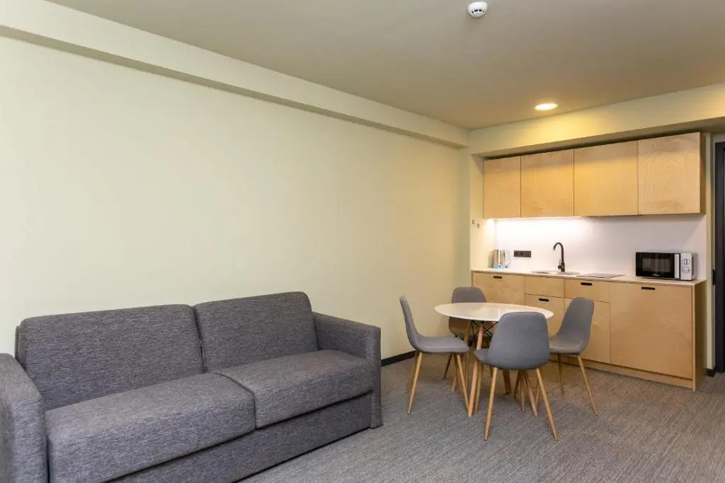 Отель Quality One BR Apartment For 4 In Bakuriani, адрес на карте Бакуриани, 9 აპრილის ქუჩა, 0909, Bakuriani, Georgia, с описанием номеров и возможностью онлайн бронирования на сайте vashotel.ru , стоимость проживания и удобства.
