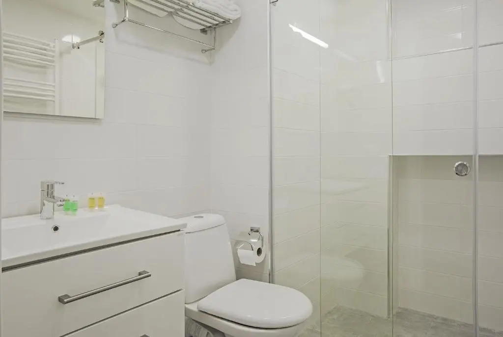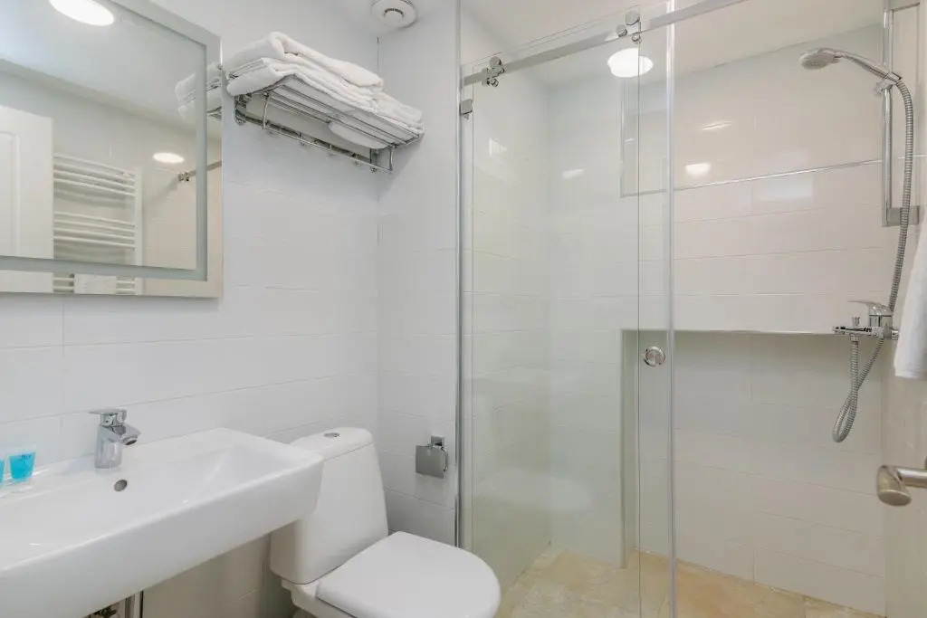 В номере вы найдёте душ, телевизор и тапочки. Оснащение зависит от выбранной категории номера.
