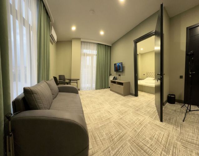 В номере «Семейный люкс» возможно размещение 3 взрослых или 2 взрослых и 2 детей.