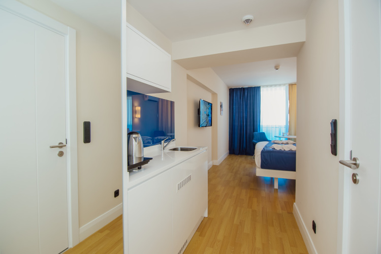 Удобно для гостей с ограниченными возможностями: на верхние этажи гостей поднимает лифт. А ещё в распоряжении гостей гладильные услуги. Сотрудники апартаментов поддержат беседу на английском и русском.