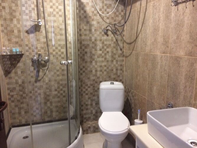 В номере вы найдёте душ и телевизор. Оснащение зависит от выбранной категории номера.