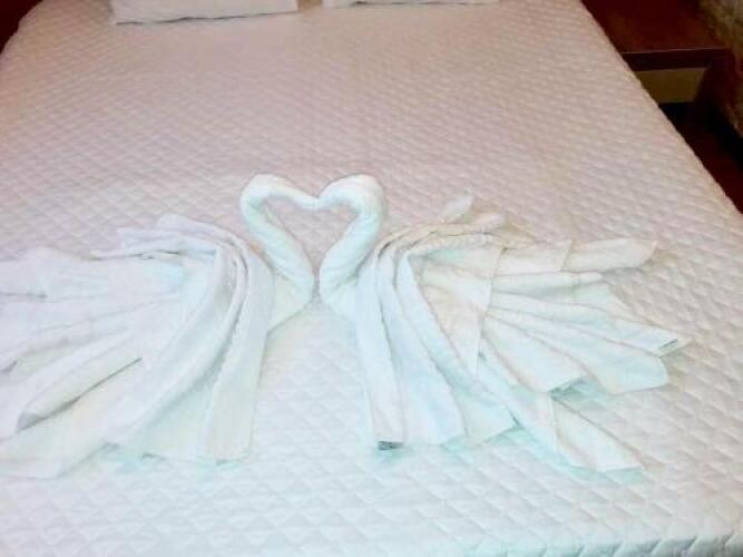 В номере вас будут ждать душ, телевизор и тапочки. Оснащение зависит от выбранной категории номера.