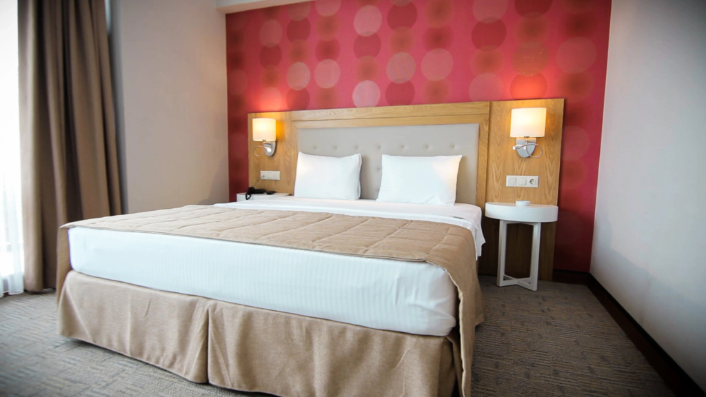 Номер уютно обставлен и оснащён необходимым, чтобы отдохнуть после долгого и насыщенного дня. Имеются телевизор, мини-бар и халат. Оснащение зависит от выбранной категории номера.