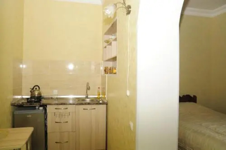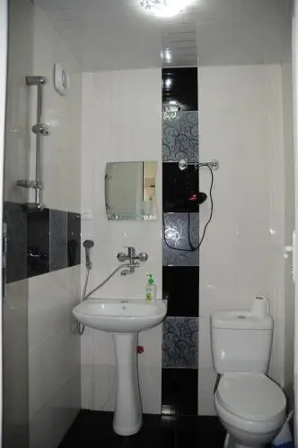 В номере вы найдёте душ, телевизор и тапочки. Оснащение зависит от выбранной категории номера.