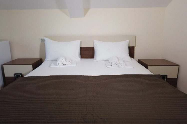Номер уютно обставлен и оснащён необходимым, чтобы отдохнуть после долгого и насыщенного дня. Имеются телевизор. Оснащение зависит от выбранной категории номера.