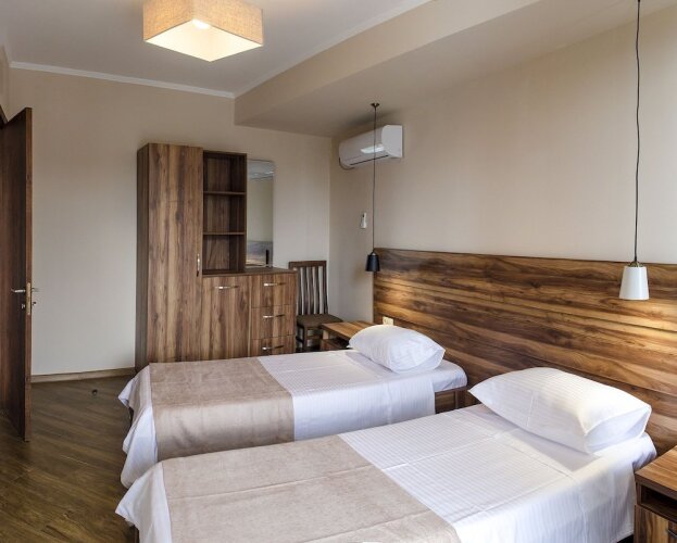 Номер уютно обставлен и оснащён необходимым, чтобы отдохнуть после долгого и насыщенного дня. Имеются телевизор. Оснащение зависит от выбранной категории номера.