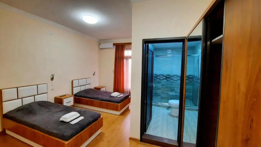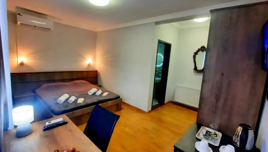 В номере вас будут ждать душ, телевизор и тапочки. Оснащение зависит от выбранной категории номера.
