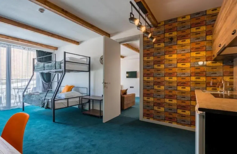 Отель Geoflats New Gudauri NF, адрес на карте Гудаури, Road to Gondola Lift New Gudauri Loft2, Appartment #404, 4702 Gudauri, Georgia, с описанием номеров и правом онлайн бронирования на сайте ВашОтель.RU , стоимость проживания и удобства.