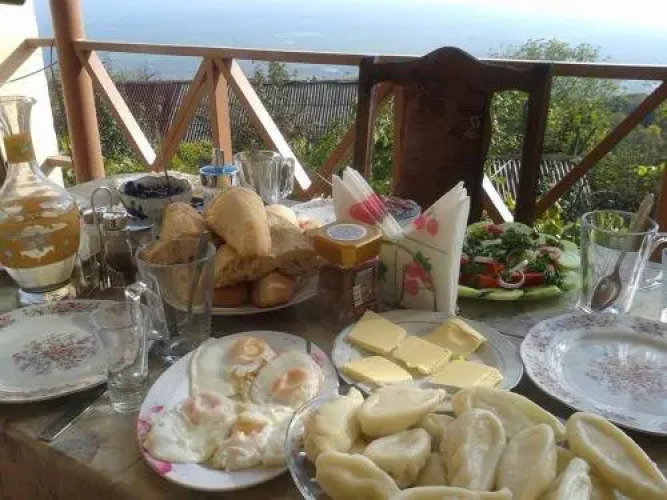 Для гостей работает бар. Попробовать новые блюда и отдохнуть можно в ресторане. Общая кухня оборудована для самостоятельного приготовления пищи. Специально для автопутешественников организована парковка.