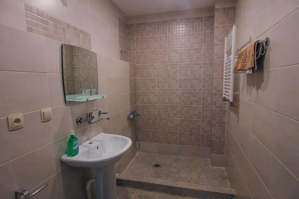 В номере вы найдёте душ и тапочки. Оснащение зависит от выбранной категории номера.