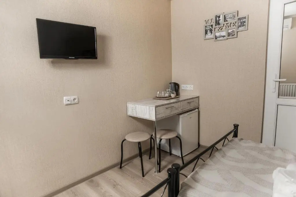 В номере вы найдёте душ, телевизор и тапочки. Оснащение зависит от выбранной категории номера.