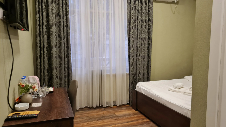 Номер уютно обставлен и оснащён необходимым, чтобы отдохнуть после долгого и насыщенного дня. Имеются телевизор. Перечисленные услуги есть не во всех номерах.