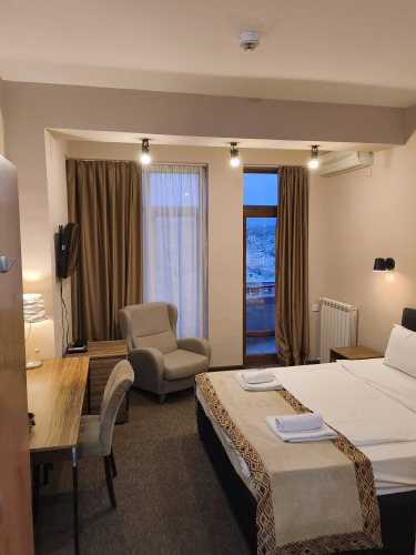 Номер уютно обставлен и оснащён необходимым, чтобы отдохнуть после долгого и насыщенного дня. Имеются телевизор и халат. Перечисленные услуги есть не во всех номерах.