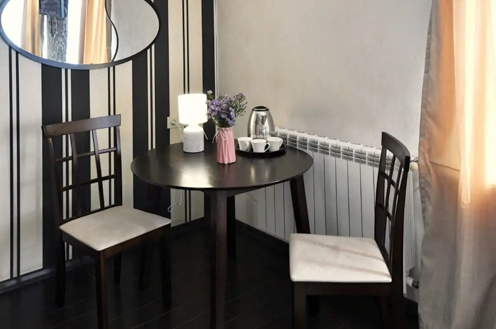 Номер уютно обставлен и оснащён необходимым, чтобы отдохнуть после долгого и насыщенного дня. Имеются телевизор. Оснащение зависит от выбранной категории номера.
