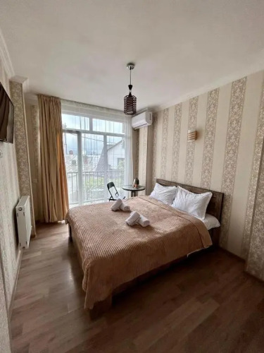 Номер уютно обставлен и оснащён необходимым, чтобы отдохнуть после долгого и насыщенного дня. Имеются телевизор. Оснащение зависит от выбранной категории номера.