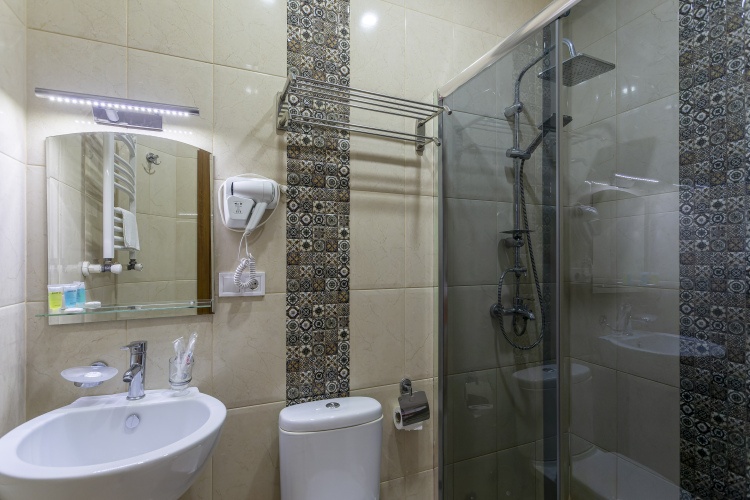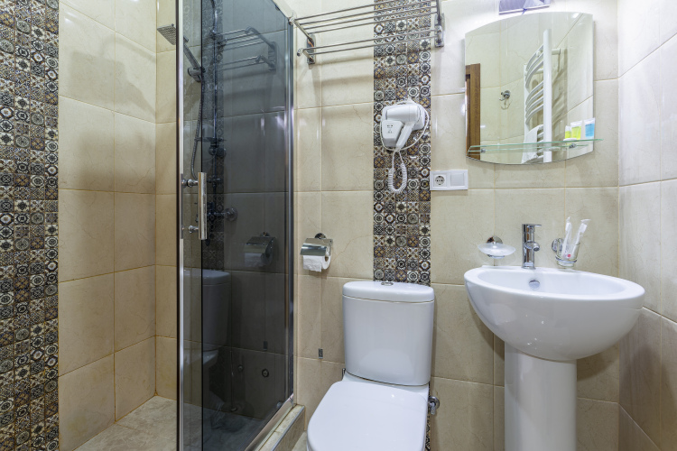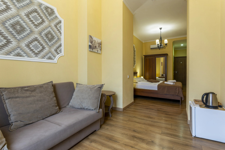 Номер уютно обставлен и оснащён необходимым, чтобы отдохнуть после долгого и насыщенного дня. Имеются телевизор и халат. Перечисленные услуги есть не во всех номерах.
