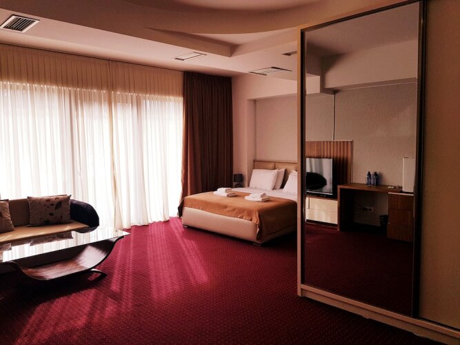 Номер уютно обставлен и оснащён необходимым, чтобы отдохнуть после долгого и насыщенного дня. Имеются душ, телевизор и тапочки. Оснащение зависит от выбранной категории номера.