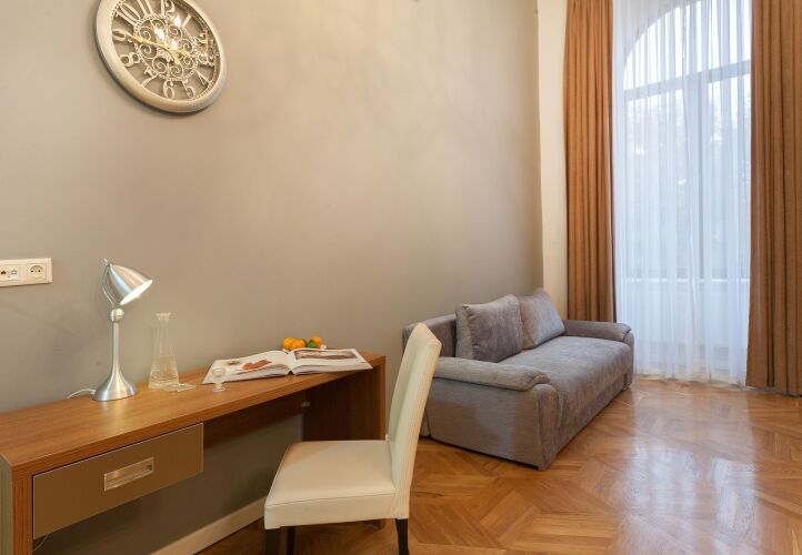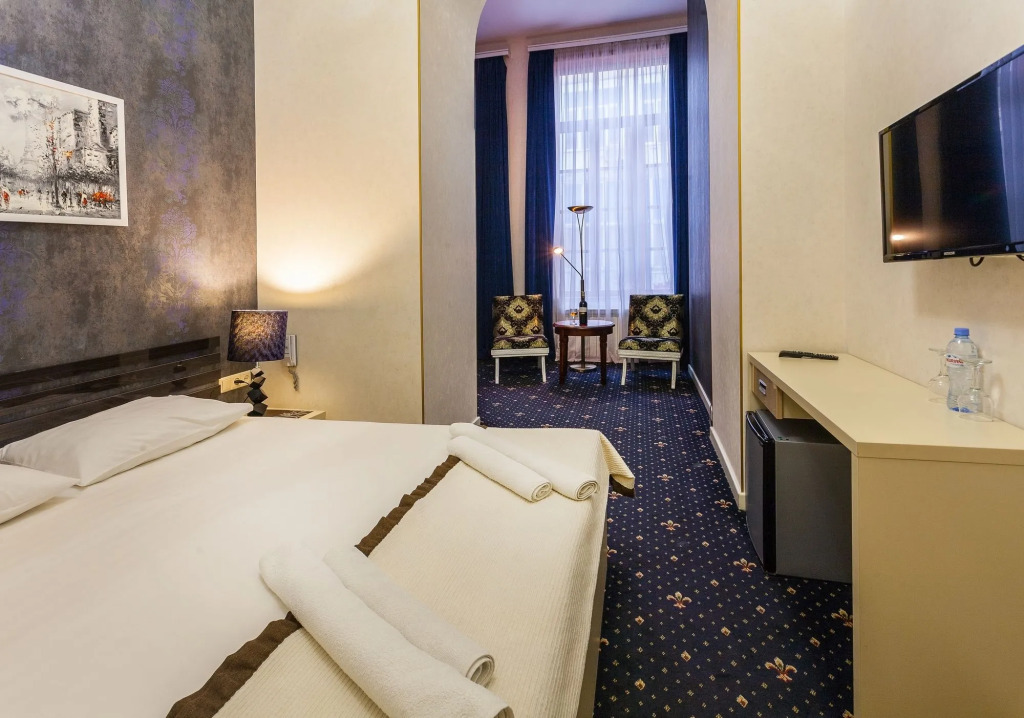В номере гостей ждут телевизор, мини-бар, халат и тапочки. Перечисленные услуги есть не во всех номерах.