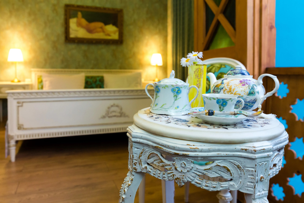 В номере вас будут ждать телевизор и халат. Оснащение зависит от выбранной категории номера.