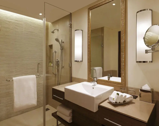 Номер уютно обставлен и оснащён необходимым, чтобы отдохнуть после долгого и насыщенного дня. Имеются душ, телевизор, мини-бар и тапочки. Оснащение зависит от выбранной категории номера.
