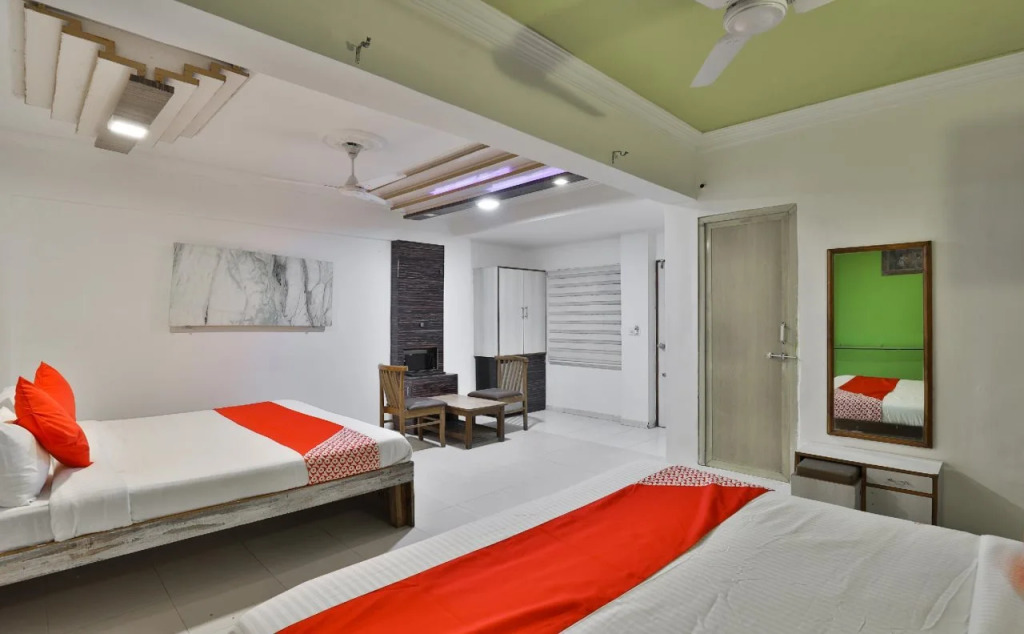 Отель Krishna By OYO Rooms, адрес на карте Ахмедабад, 639/3 Sardar Patel Road 3rd Floor Sindhi Ambawadi Hansol Ahmedabad 380019, с характеристиками номеров и возможностью онлайн бронирования на ресурсе vashotel.ru , цены проживания и удобства.