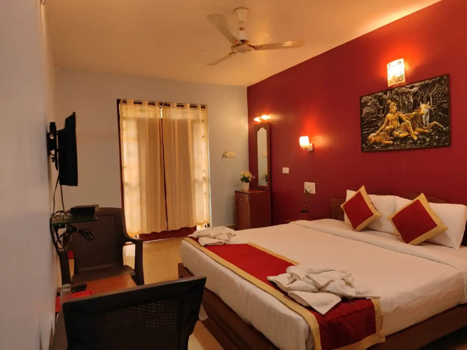 Номер уютно обставлен и оснащён необходимым, чтобы отдохнуть после долгого и насыщенного дня. Имеются телевизор. Оснащение зависит от выбранной категории номера.
